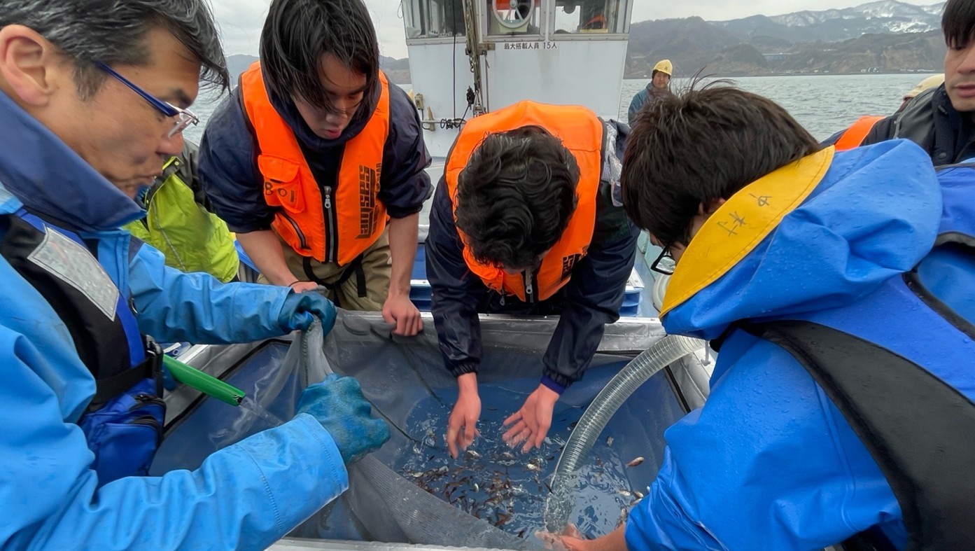 昨年、富山実験場では、1月1日に発生した能登半島地震の影響で、研究対象の養殖魚の一部が死亡してしまいました。しかし、アカムツ稚魚の大部分は、放流等のため海洋高校に移動していて、奇跡的に生き残り、稚魚約8,000尾を放流することができました。