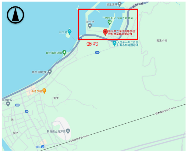 集合場所  :新潟県立海洋高等学校 栽培漁業臨海実習棟(能生漁港内)