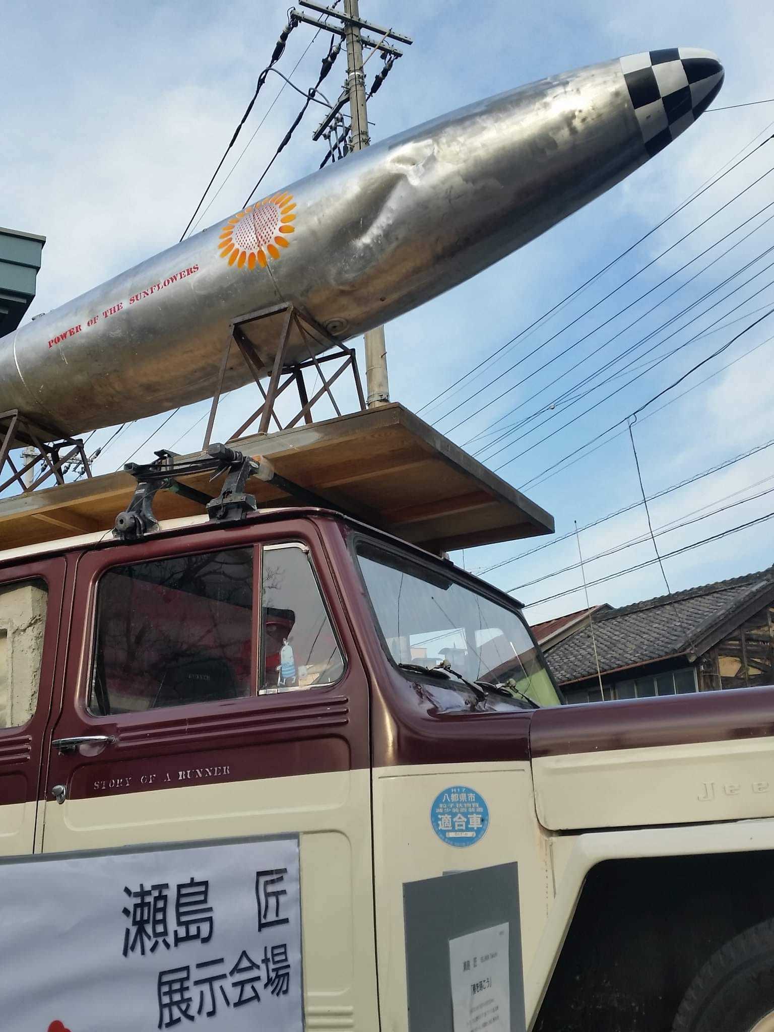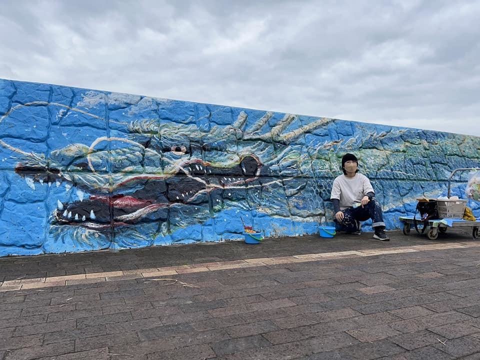 ・特に被害の大きかった飯岡地区など旭市内の18ヶ所に展示ポイントを設けました。招待作家含めた20人以上の芸術家(ほぼ3分の2は市内在住)の、長さ100mの堤防壁画や四輪駆動車を改造したオブジェ、伝統工芸、書道、絵画、写真など様々なアートを配置します。