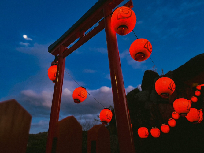 いよいよ明日からスタート!忍の里が真っ赤に輝く!ニジゲンノモリ限定「忍」和風イルミネーション 『NARUTO&BORUTO 忍里×提灯イルミネーション2024 in淡路島』