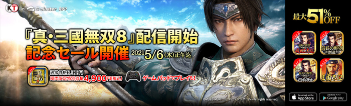 大人気タクティカルアクションゲーム『真・三國無双8』 スマートフォン・タブレット向けクラウドゲームアプリで登場! ~2021年4月15日(木)配信開始、記念セールも同日開催~