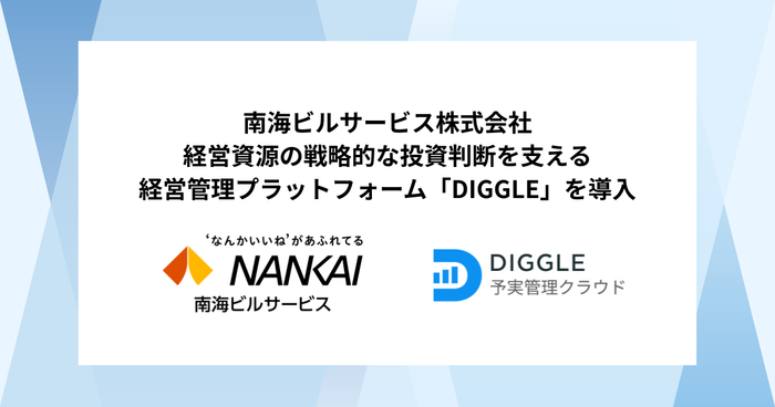 DIGGLE株式会社(本社:東京都渋谷区、代表取締役:山本 清貴)は、南海ビルサービス株式会社(本社所在地:大阪府大阪市、取締役社長:山本 昇)が、経営資源の戦略的な投資判断を支えるエンタープライズ企業向け経営管理プラットフォーム「DIGGLE(ディグル)」を2026年4月より本格導入することをお知らせします。この導入により、全社同一指標で状況を把握できる環境を整備し、迅速かつ的確な意思決定の実現を目指します。
