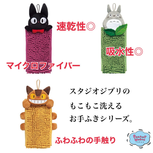 スタジオジブリのもこもこ洗えるお手ふきシリーズ。吸収性がよくサラッと乾くマイクロファイバーがふわふわ気持ちいい3種類♪