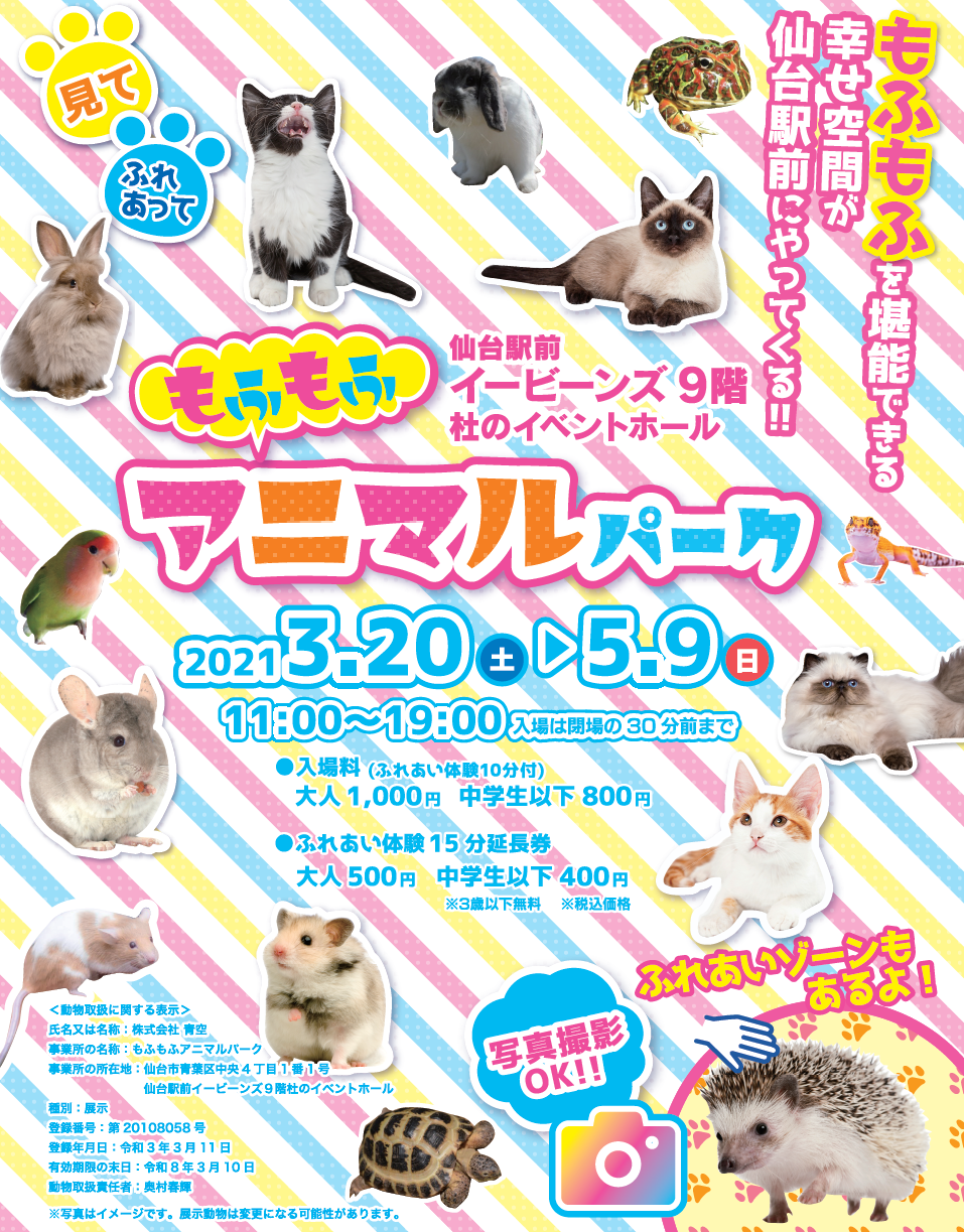仙台駅前イービーンズにて「もふもふアニマルパーク」を 2021年3月20日より開催 もふもふを堪能できる幸せ空間!