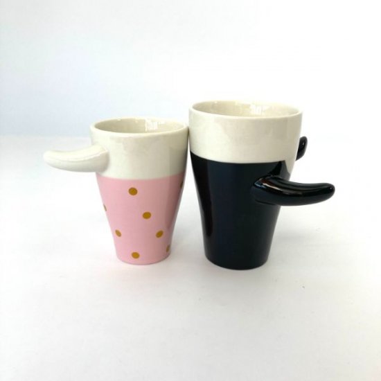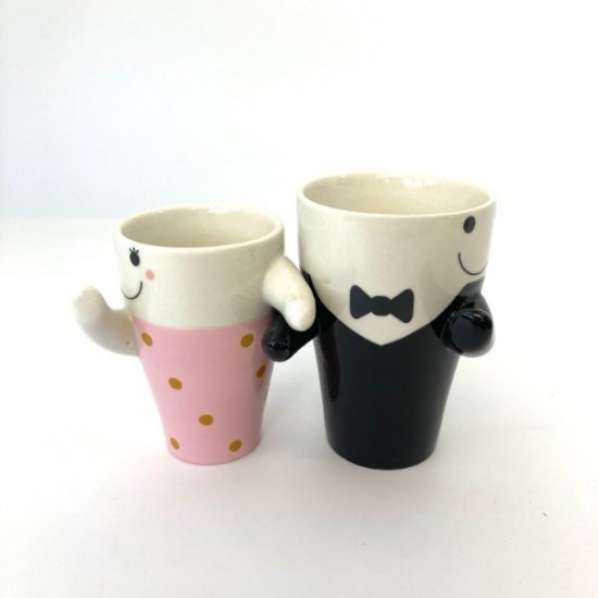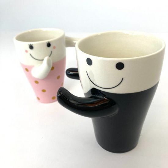 こちらは斬新なペアマグです。ボーイとガールが踊っているようなポーズになるペアのマグカップ♪ボーイとガールのサイズ感は一回りほど違います。