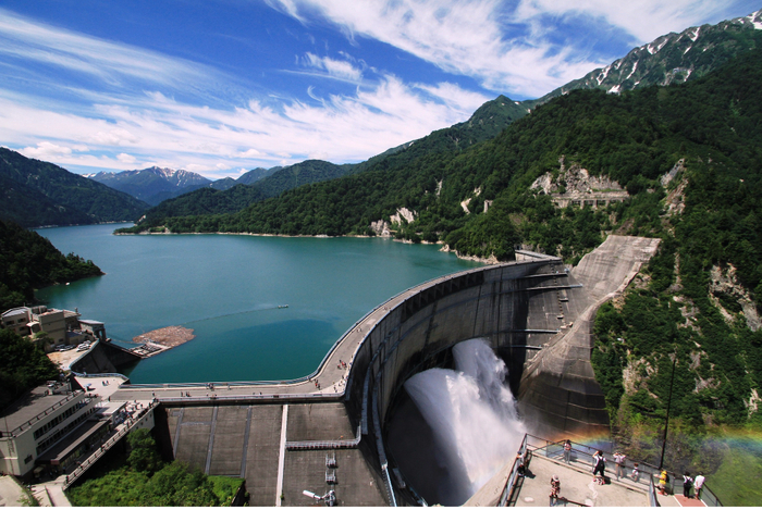 富山県と長野県の県境に位置する黒部ダム。国内外から多くの観光客が訪れる観光スポットとして人気です。迫力満点の観光放水や、遊覧船でのクルーズで景色が楽しめます。