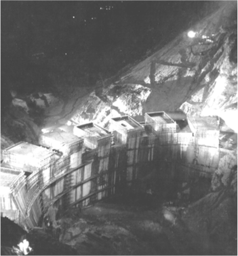 昭和31年8月からはじまった掘削工事は、昭和32年5月、破砕帯にぶつかり、掘削不可能となってしまいました。苦闘の末7ヶ月を要し、ついに破砕帯を突破したのです。大町トンネル(関電トンネル)開通後は、北大町駅付近から扇沢を経て大量の資材が運ばれ、実に7年の歳月と当時の金額にして513億円の工費、延べ1,000万人もの人手により昭和38年くろよんは完成しました。黒部ダムは、関西の電力不足を救い、日本の経済成長を助けました。「くろよん建設」のまさに前線基地となったのが、長野県大町市なのです。