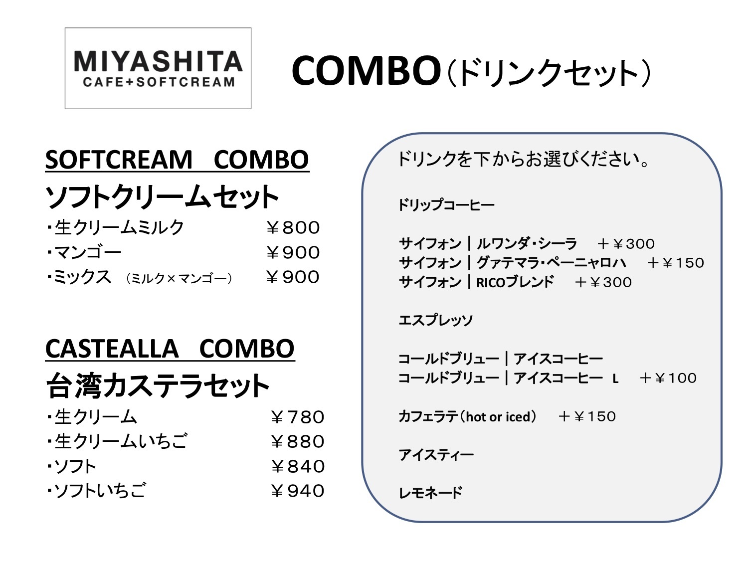 定番人気の「ダイミョウソフト生クリームミルク味」を台湾カステラにサンドした商品もご用意しております。「MIYASHITA CAFE」では、ソフトクリームとかけ合わせることでより一層美味しさを引き出すことができる商品を日々研究・提案しています。