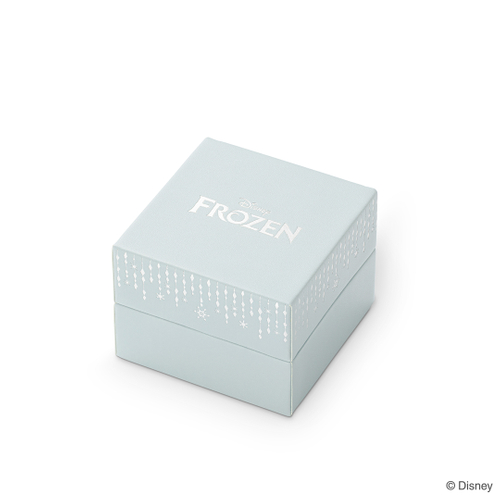 『アナと雪の女王』の世界観をイメージしたブルーグレーに、シルバー色にきらめくロゴと降り注ぐ雪の結晶をデザインした専用ボックス入りで、贈り物にもおすすめです。