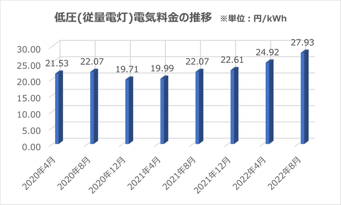もともと冬は、1年の中でも最も電気代が高い季節ですが、2021年以降、季節に関係なく家庭向けの電気料金は上昇し続けています。※2