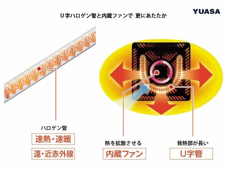 さらに、ヒーター管は形状をU字にして発熱部を長くした「U字ヒーター」のファン付きタイプを使用しています。