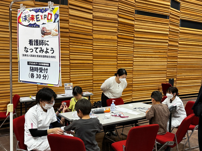 「子ども未来EXPO in 城東」は、子どもたちにさまざまな職業体験を提供するイベントで、地域の企業や団体が参加しています。医療法人医誠会は、地域の健康と福祉に貢献することを使命とし今回のイベントに参加しました。医誠会国際総合病院のブースでは、子どもたちが実際の医療器具を使って看護師の仕事を体験することができました。このような体験を通じて、子どもたちに医療職の魅力を伝え、将来の医療人材の育成に寄与することを目指しています。
