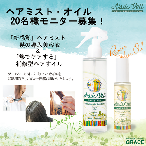 アルビスヴェールの新製品ヘアミスト&ヘアオイルのモニターを20名募集
