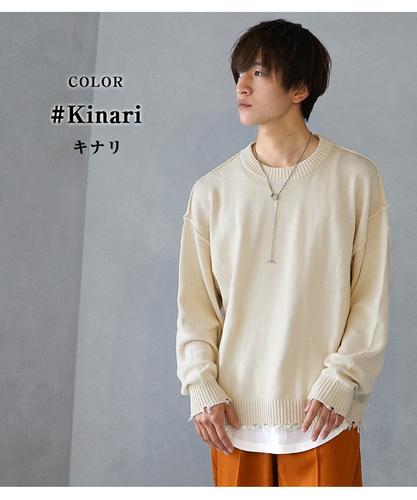 袖と裾部分にささやかなダメージ加工を施し、さりげなくオシャレ見えする1枚。