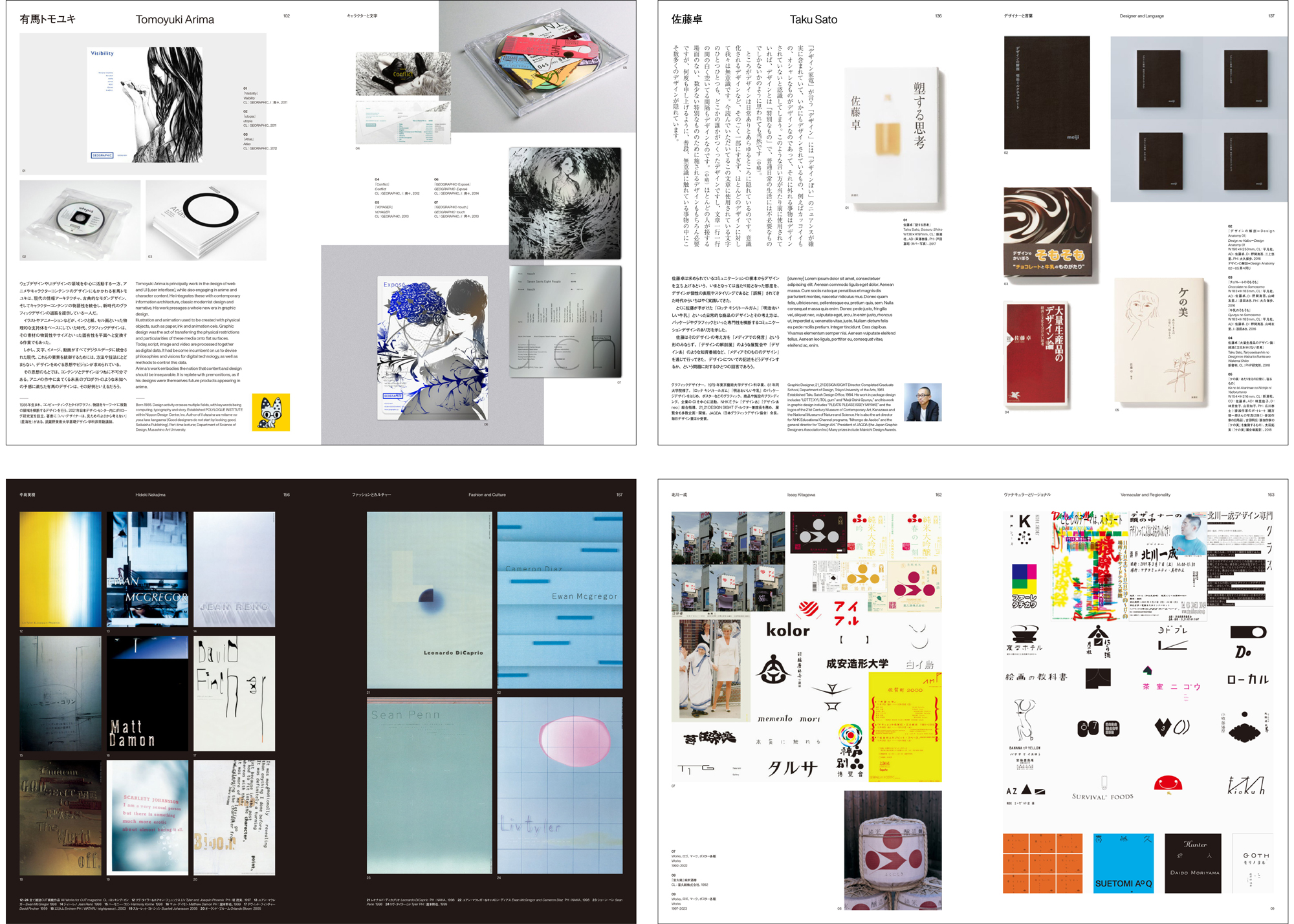 II:辺境のグラフィックデザイン:1. テクノロジーとポエジー/2 造形と感性/3. メディアとマテリアル/4. 言葉とイラストレーション/5. キャラクターと文字/6. 書物の風景とタイポグラフィ/7. デザイナーと言葉/8. ファッションとカルチャー/9. ヴァナキュラーとリージョナル/10. 文字と身体/11. グローバル性と固有性/ 12. パブリックとパーソナル/13. 言語を越えて