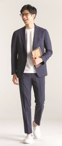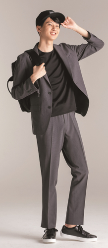 このスーツはセットアップ仕様(上下で別売り)で、パンツはスマートな印象のノータックに加えて、今年は“ビジカジ”スタイルとしてトレンドのツータックを新たに取り揃え、アイテムのバリエーションを拡充しました。また、同生地ベストも単品で用意しています。