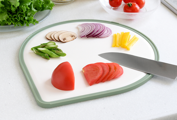 まな板のカタチを見つめ直し、こだわりの「しずく型」として開発をいたしました。