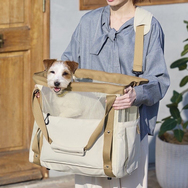 愛犬とのお出かけや通院をもっと快適にする「パカットメッシュキャリーバッグ」も新登場します。ストレスフリーな出し入れと抜群の通気性が特徴の、移動がもっと楽になるキャリーバッグです。大口天面(約45cm×28cm)で自立するため、愛犬の出し入れがしやすい設計です。さらに、ショルダー、ドライブ、スーツケースオンバッグの3WAY仕様で、シーンに合わせて使い分けが可能です。