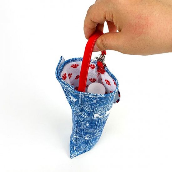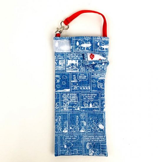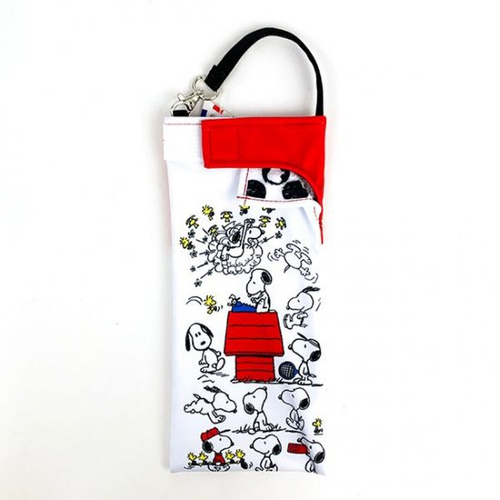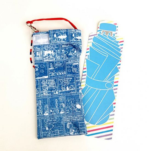 くるっと収納できる、くるポンのブルーのスヌーピーコミックデザインです。結露したペットボトルや雨で濡れた折り畳み傘を収納出来るように設計された2way仕様です。内生地は吸水生地なので水分をぐんぐん吸収してくれますよ♪