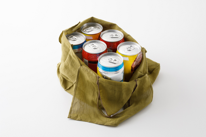 手ぬぐいエコバッグは綿と和紙の天然繊維を使用。軽量感、水分を吸収しやすく乾きやすい特徴があります。ビール6缶が入る大きさになります。
