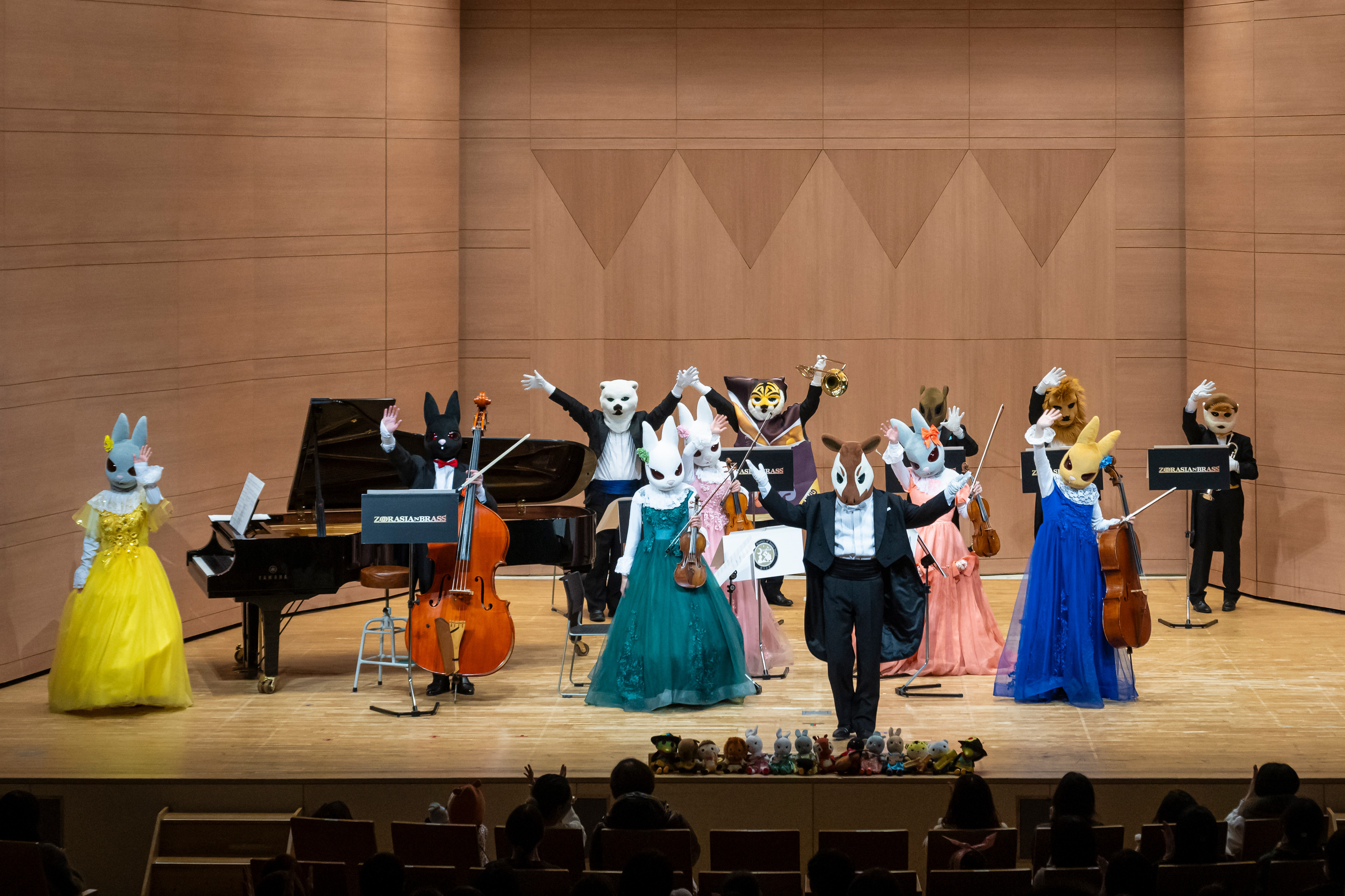 指揮者のオカピをはじめ、演奏するのは全て希少動物という金管五重奏「ズーラシアンブラス」。クラシック音楽における絵本のような役割ができれば…と2000年に誕生しました。2010年には「横浜観光コンベンション特別功労賞」を、2011年には「キッズデザイン賞」において最優秀賞(経済産業大臣賞)を、2023年には「日本管打・吹奏楽アカデミー賞(演奏部門)」を受賞しました。2014年にはコンサートの取組が高く評価され、株式会社スーパーキッズは経済産業省より「がんばる中小企業・小規模事業者300社」に選定されました。また2024年度には高校音楽の教科書に掲載。多数のCD、DVDのみならず、楽譜もリリースし、金管アンサンブル界の裾野を広げています。