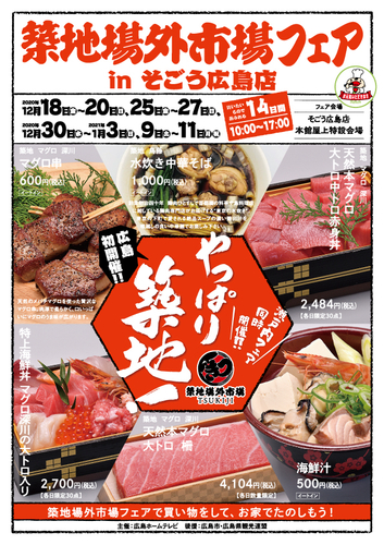 年末年始は、「築地場外市場フェア in そごう広島店」で、お買い物して自宅で”築地”を楽しもう!!