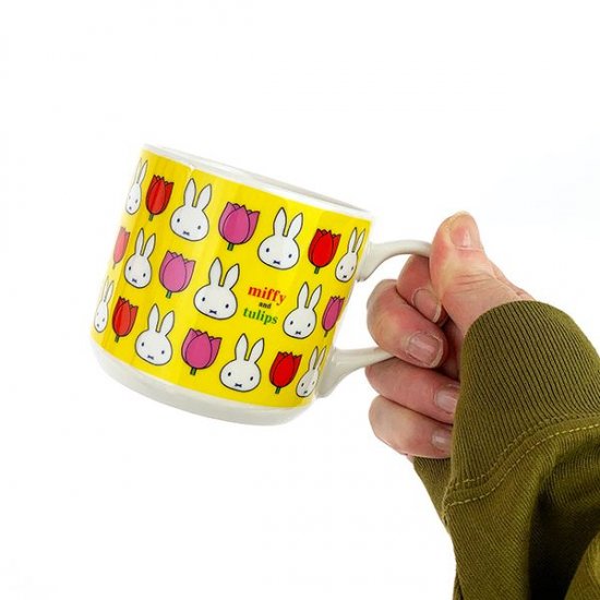 ミッフィーのお顔に加え黄色いチューリップが並ぶキュートなデザインの、タンブラーからご紹介します。