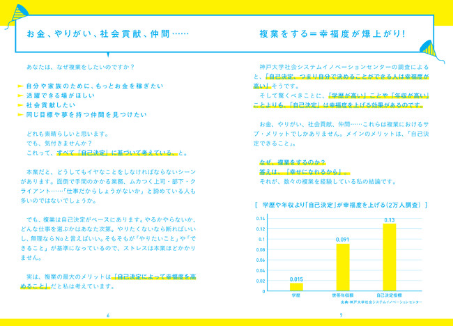 実は、複業の最大のメリットは「自己決定によって幸福度を高めること」だと数々の複業を経験している著者は考えます。