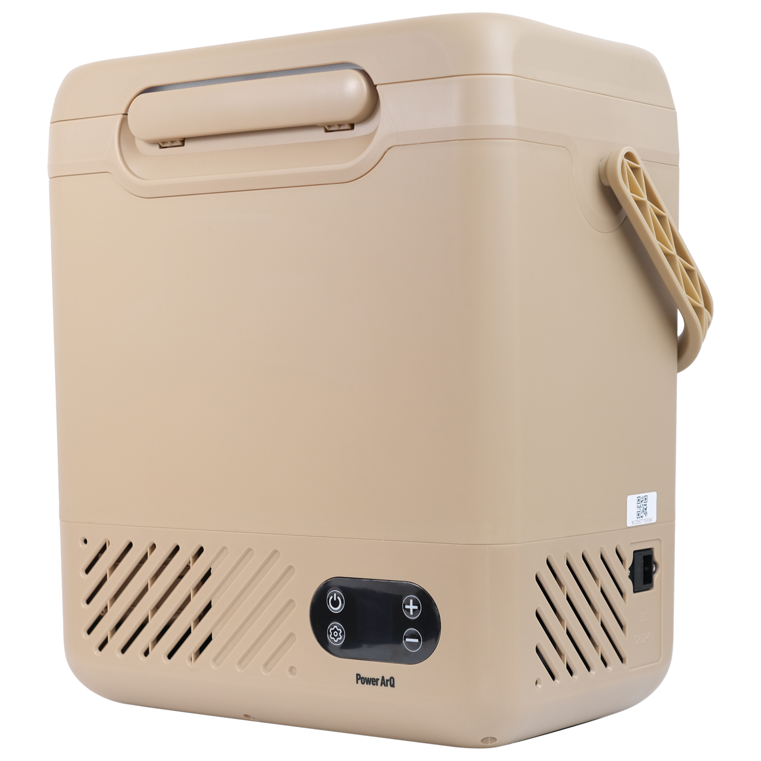 PowerArQブランドのシグネチャーカラー、コヨーテタンを採用。ポータブル冷蔵庫は黒や白の定番カラーが多い中、本製品はコヨーテタンカラーのため、キャンプギアや車中泊などのシーンに合わせやすいです。