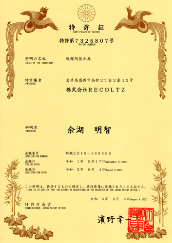 針による怪我やウェアの破れを防ぐことができ、且つ繰り返し使用できるため、これまで主流だった安全ピンに代わる、サステナブルなゼッケン装着方法として注目されているBIB-IT.ゼッケン留めが、この度特許を取得いたしました。