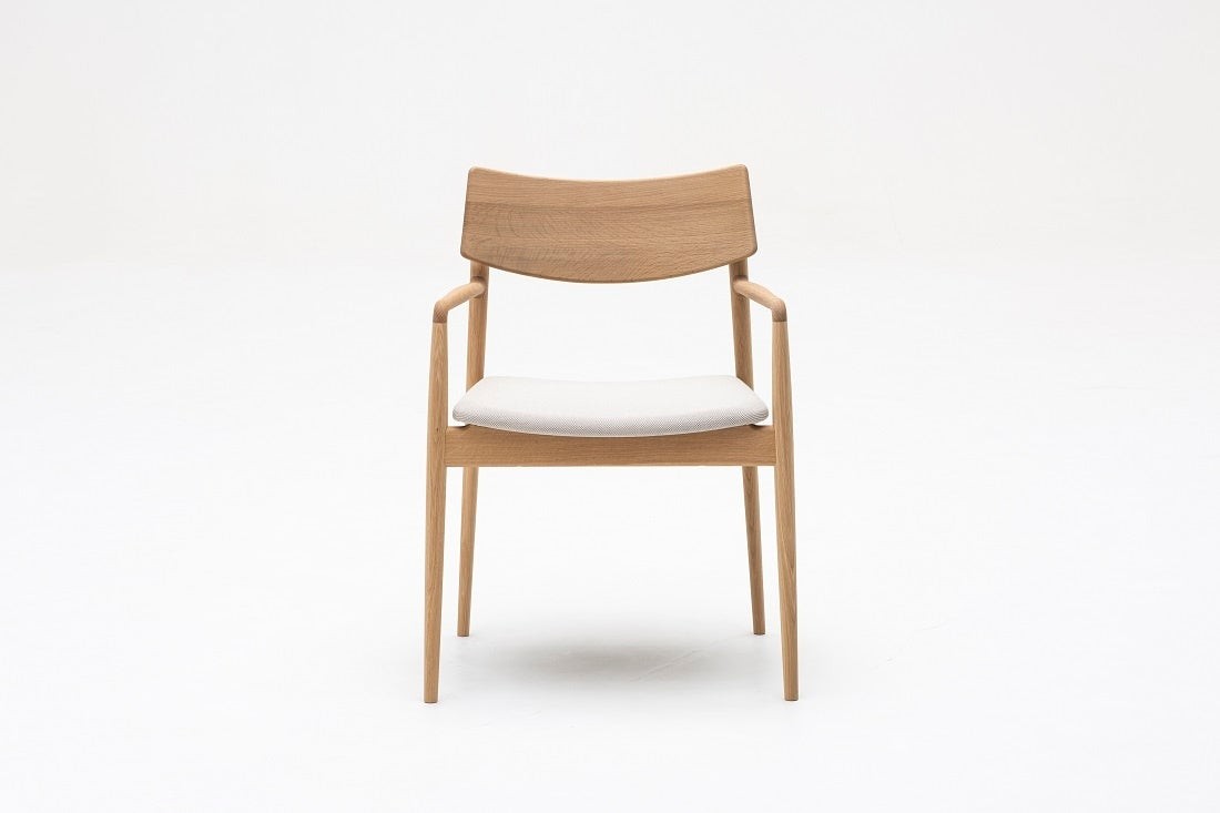 「Karimoku Case(カリモクケース)」ブランドより、アームチェア A-DC02モデルを出展します。建築家・プロダクトデザイナーの芦沢啓治氏によって、渋谷のカフェのためにデザインされたダイニングチェアです。