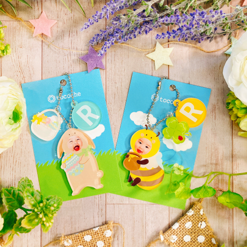 「きぐるみキーホルダー」とは、お子様の「顔写真」と「きぐるみ」を組み合わせたオリジナルのアクリルキーホルダーです。
