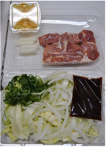 鶏もも肉(240g)・玉ねぎ・キャベツ・チーズ・カットねぎ・トック・オリジナルソース