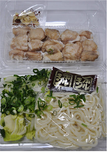 ホルモン(230g)・玉ねぎ・キャベツ・カットねぎ・にんにくチップ・うどん(2玉)・オリジナルソース
