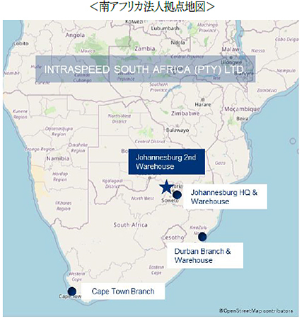Intraspeed社は1999年2月に設立し、南アフリカ、ケニアに拠点を展開。当社は2018年1月に出資して子会社化した以降、アフリカにおけるビジネス展開を強化してきました。今夏にはダーバン支店・倉庫の移転拡張を予定するなど、アフリカ市場での強固な事業基盤を確立してまいります。