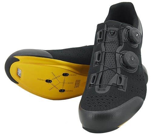 ニットアッパーシリーズのミドルグレードモデル。剛性と快適性のバランスが良いグラスファイバーナイロンアウトソール「R250」を採用。