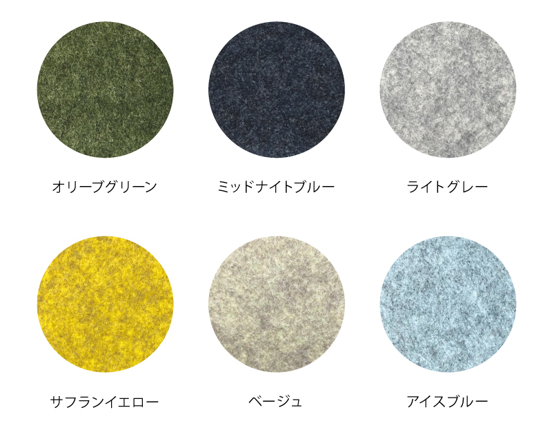 材料には高性能吸音材QonPET(キューオンペット)と同じ吸音材を使用。QonPET特有の高い吸音性能を発揮する独自の2層構造を意匠性のあるフェルトで再現。工業用途で培った技術と知識を活かした、リブグラフィだから出来た商品です。