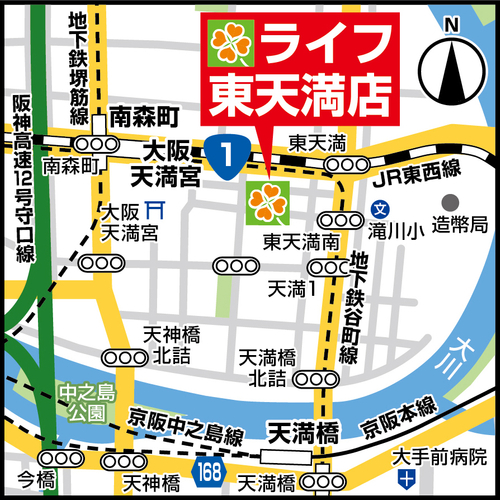 <店 名>「ライフ東天満(ひがしてんま)店」