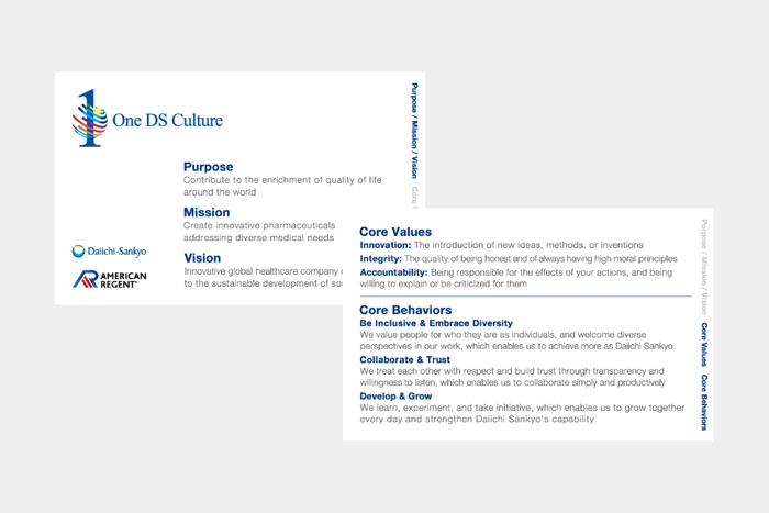 コーポレートブランディング支援を行う株式会社揚羽(東京都中央区 代表取締役社長:湊 剛宏 証券コード:9330 以下「弊社」)は、第一三共株式会社(東京都中央区 以下「同社」)の、2025年までにグローバルカンパニーとしての企業文化「One DS Culture」を醸成・浸透させることを目指す活動に伴走しています。支援1年目となる、2023年度の取り組みをご紹介します。