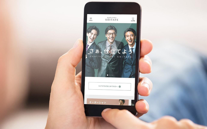 初回に店でオーダースーツを注文すると、次回以降は来店しなくてもスマートフォンやパソコンを使って“いつでも・どこでも”オーダースーツ・シャツを注文できます。ご利用の際は「クオリティオーダー・SHITATE」のWEBサイト上で注文・会計を行います。ネットで注文すると仕上がり商品は自宅配送(送料無料)となるため、商品を受け取りに来店する手間も不要となります。