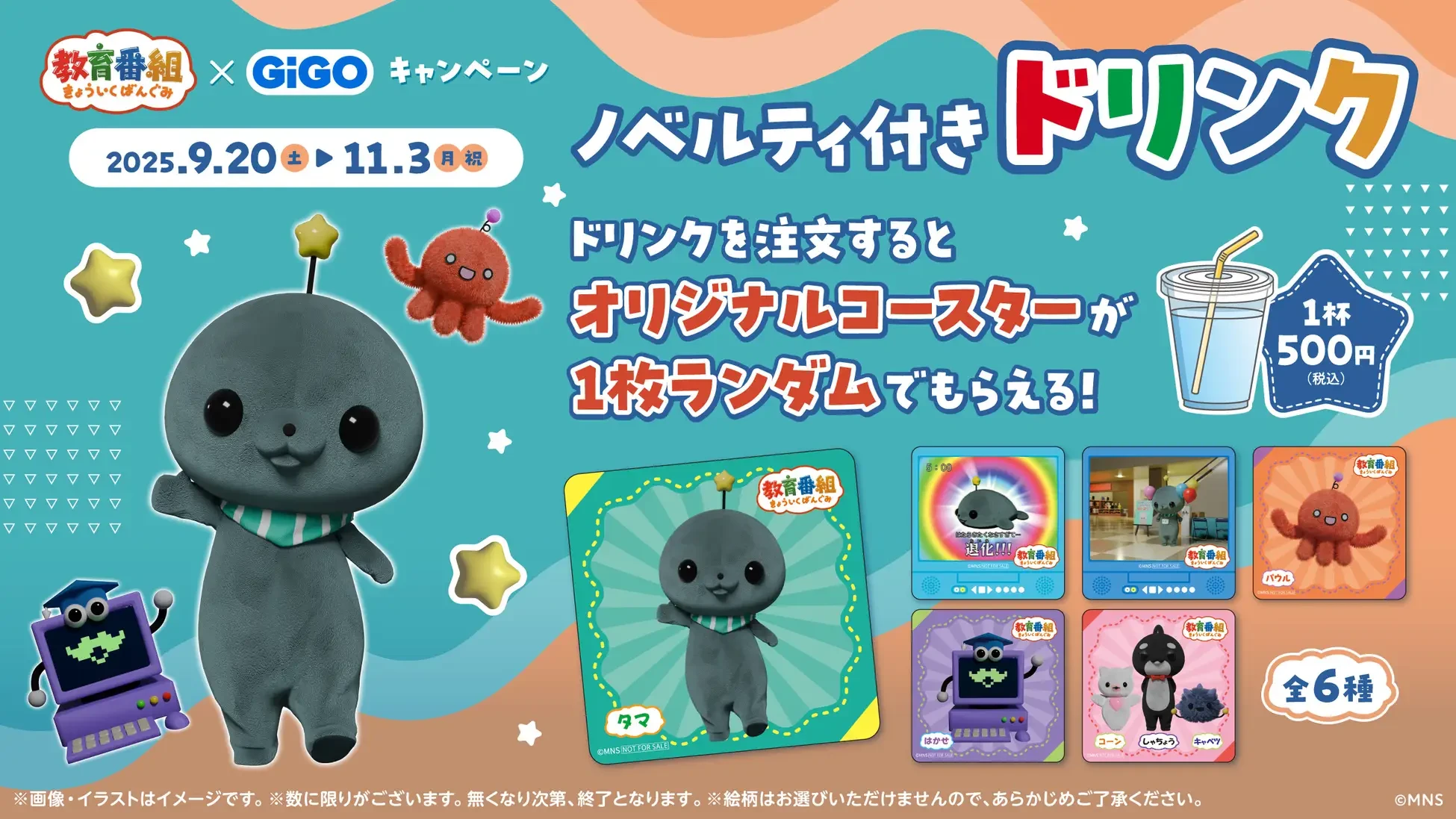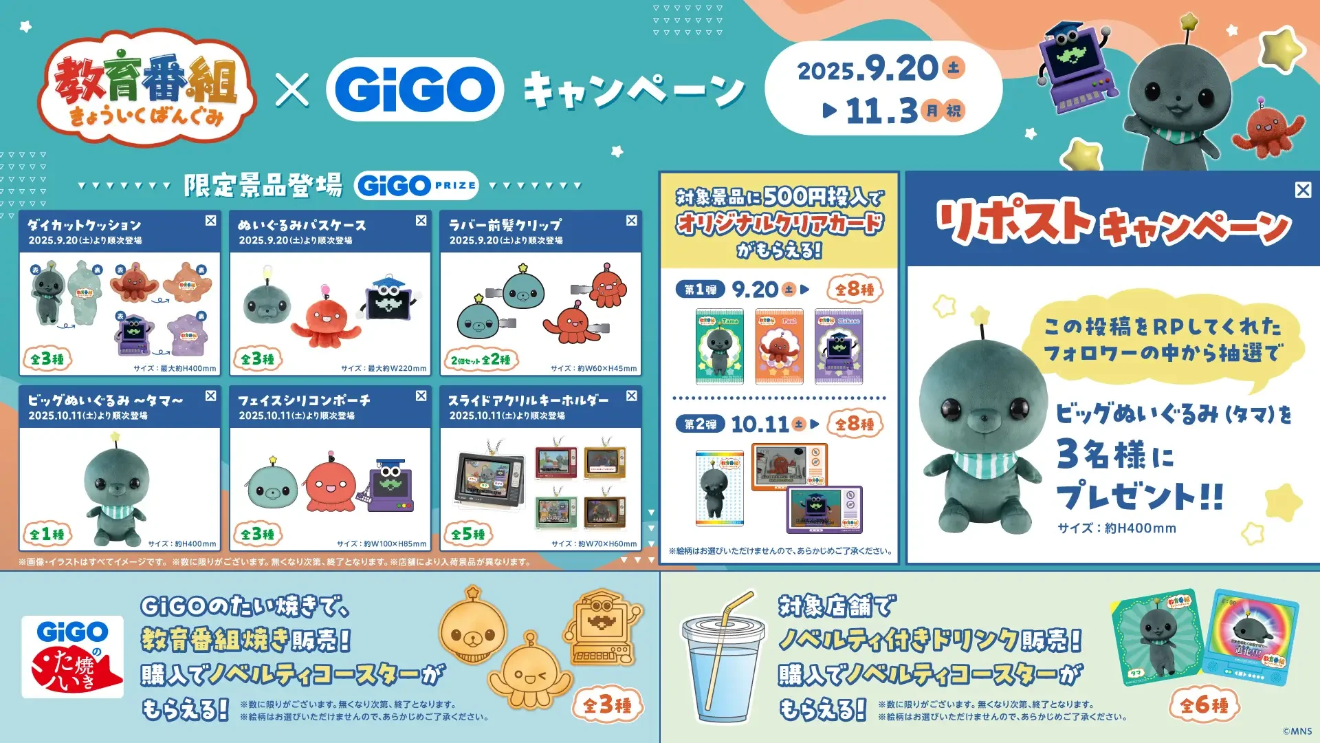 株式会社GENDA GiGO Entertainment(本社:東京都港区 代表取締役社長:二宮 一浩 以下「当社」)はGiGOグループのお店におきまして、SNSで注目を集めるシュール×ポップな世界観の“存在しない”教育番組風コンテンツ『教育番組』とのコラボキャンペーンを、2025年9月20日(土)より開催いたします。