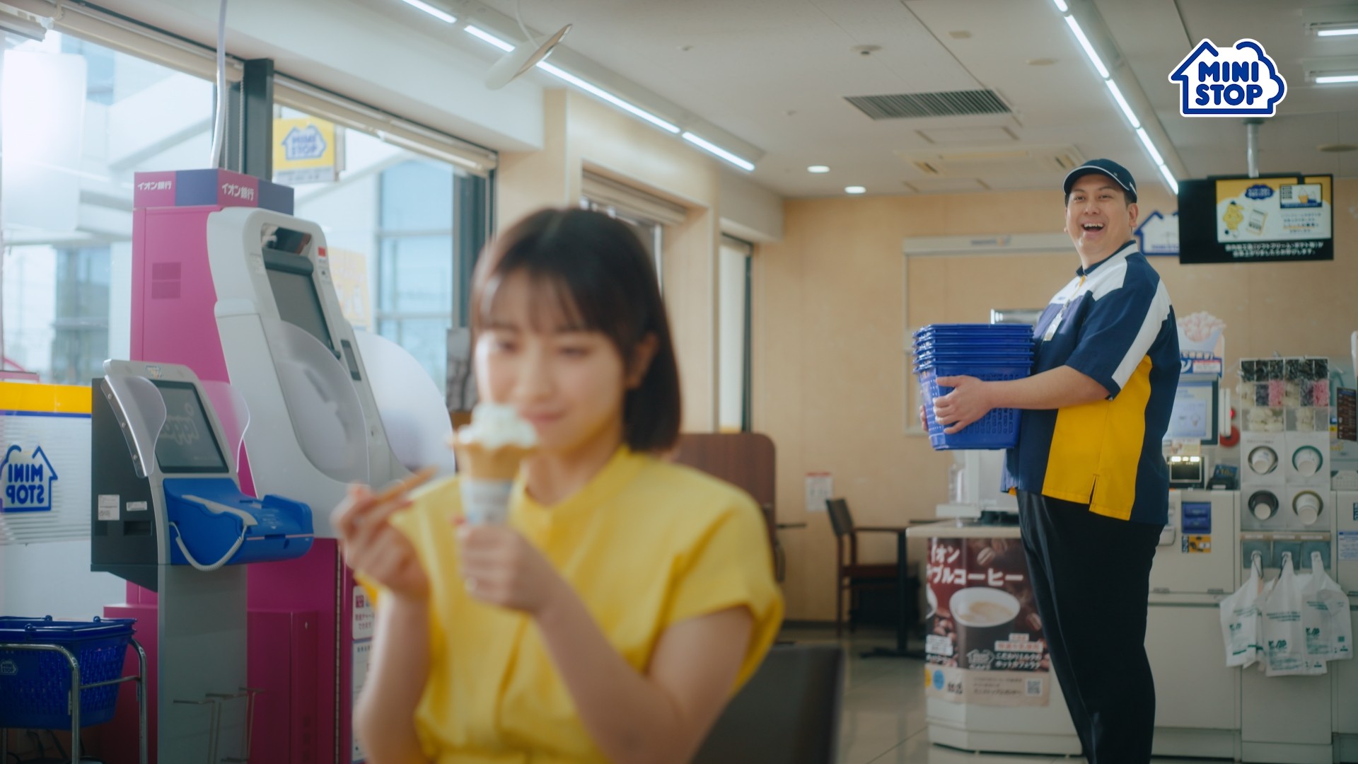 TVCMに登場するのは、お笑いコンビ「レインボー」のジャンボたかおさんと、Netflixシリーズ『イクサガミ』での演技も話題となった俳優の藤﨑ゆみあさん。ジャンボたかおさん演じる店長と、藤﨑さん演じるお客さまが作り出す、チャーミングな世界観にご注目ください。また、かつてミニストップのCMソングとしても愛されていた「しゃべれる、食べれる、ミニストップ」の楽曲を、現代風にアレンジしてリメイク。往年のミニストップファンには、よりお楽しみいただけるような内容となっています。