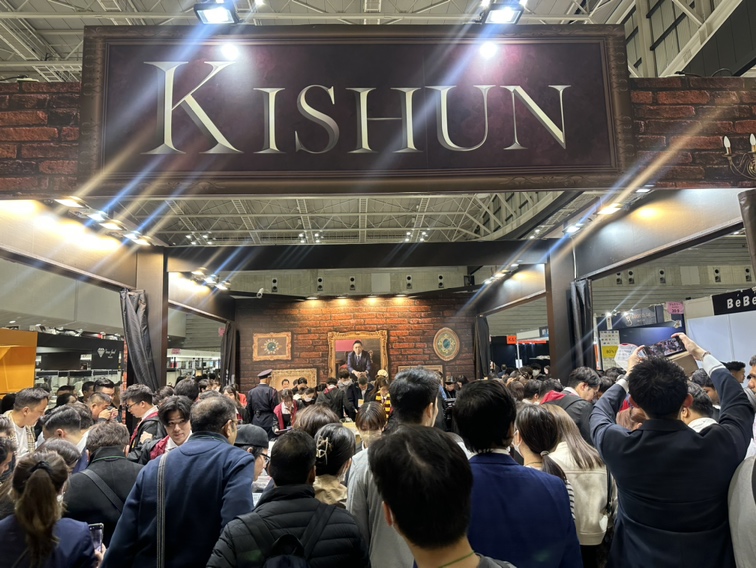 「宝石が魅せる様々な変化を直接見て触り、感じていただきたい」という想いで【Fascinating to change「魅せる変化」】をキャッチコピーのもと、『魔法』をテーマに魔法学校のような空間を演出しました。今回の展示会では売り子も魔法をイメージさせる衣装を着用したことで、これまでの展示会とはひと味違った雰囲気のKISHUNブースとなりました。
