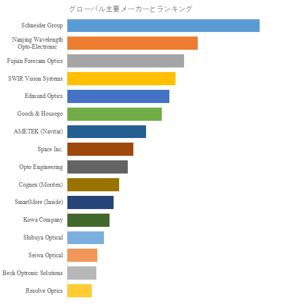 LP Informationのトップ企業研究センターによると、短波長赤外線 (SWIR) レンズの世界的な主要製造業者には、Schneider Group、Nanjing Wavelength Opto-Electronic、Fujian Forecam Optics、SWIR Vision Systems、Edmund Optics、Gooch & Housego、Space Inc.、AMETEK (Navitar)、Opto Engineering、Cognex (Moritex)などが含まれている。2024年、世界のトップ10企業は売上の観点から約53.0%の市場シェアを持っていた。