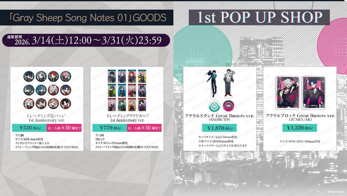 Gray Sheep アーカイブグッズ販売決定!