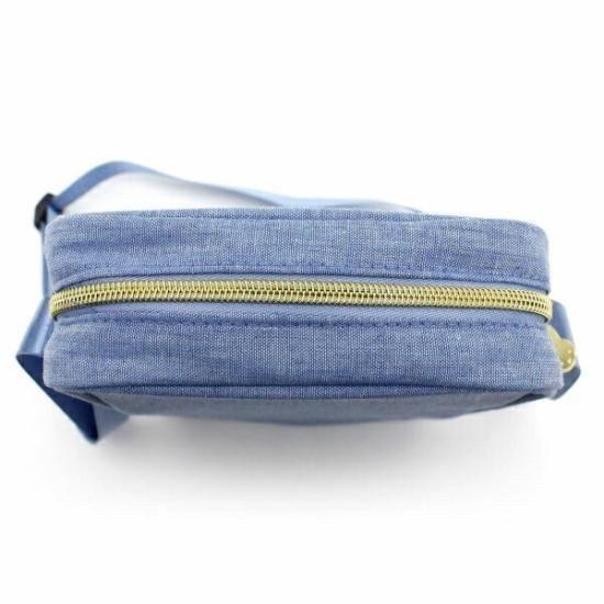 ブルーの方は上と前側に1つずつチャックがあります。ポケットの数がベージュと違うので、気をつけましょう。