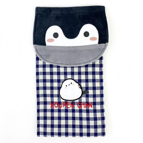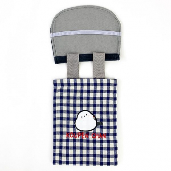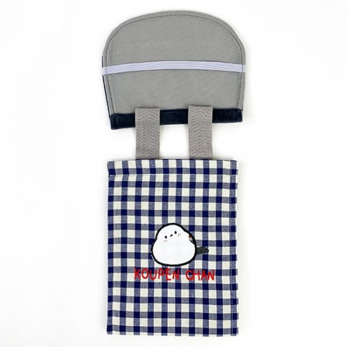 上部のホルダー部分にはコウペンちゃんの顔が♡さらに、予備のロールペーパーを入れられるチェック柄の部分には邪エナガさんまでいます♪