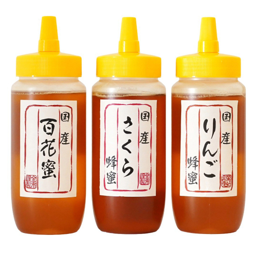 国産りんご蜂蜜、国産さくら蜂蜜など。