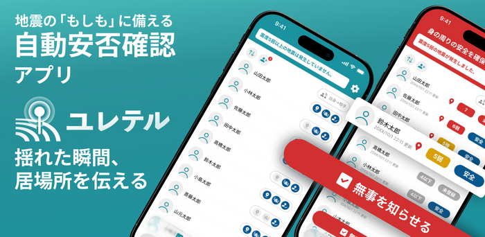 「入れておくだけで安心」── 次世代型自動安否確認アプリ「ユレテル」法人版を提供開始