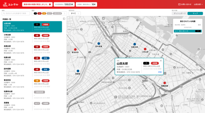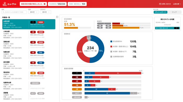 株式会社山藤総合企画(本社:東京都港区、代表取締役:山田健太、以下「当社」)は、地震発生時に位置情報や安否を自動共有するアプリ「ユレテル」において、組織の危機管理を円滑にする管理者機能を搭載した法人向けサービス(以下、法人版)を、東日本大震災から15年となる2026年3月11日より提供開始いたします。